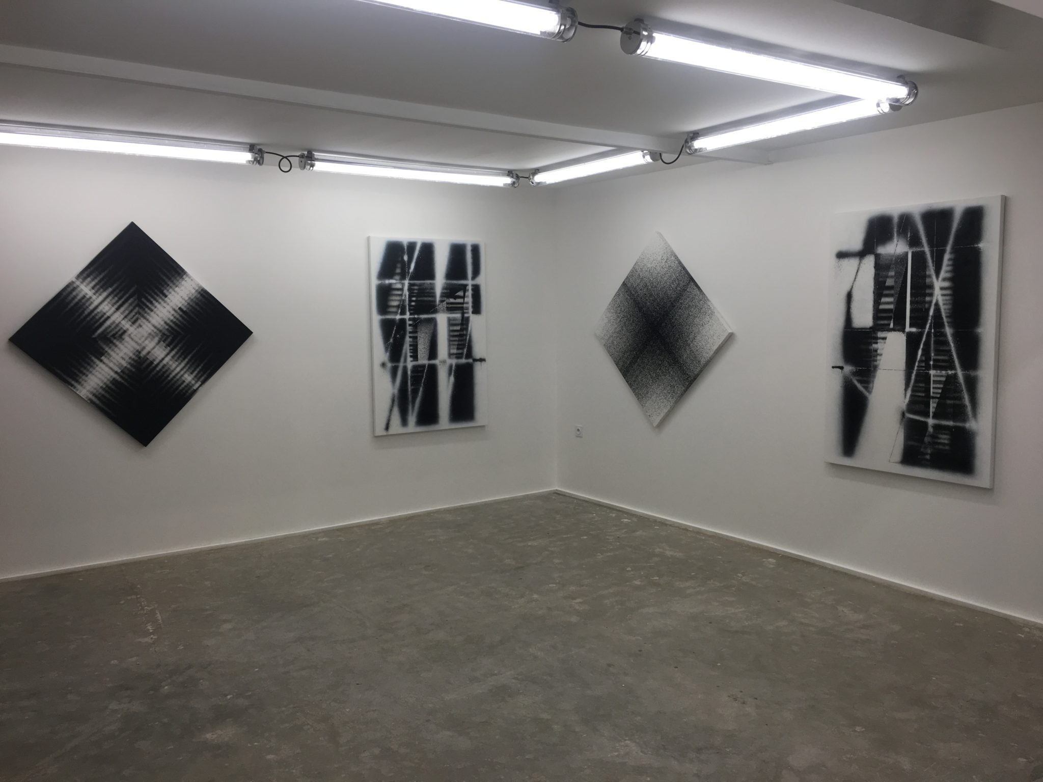 Sur des toiles de préférence de grand format, L’Outsider s’amuse des pleins et des vides, fusionne des espaces de respirations et de tumultes, fait dialoguer le noir charbon avec le blanc étincelant.